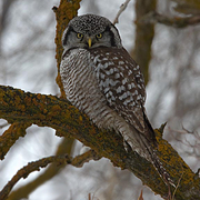 Owls have an upright posture, large heads, forward-facing eyes, and strong, sharp bills with a pronounced downward curve. Most are nocturnal or semi-nocturnal. Exceptional low-light vision and keen directional hearing enable them to pinpoint the location of prey. Owls typically have extensive feathering, with feathers often extending to the tips of the toes. Cryptically colored and patterned plumage helps to camouflage them as they rest by day. Their dense, soft feathers allow them to fly silently. The world's two owl families are both represented in Washington: