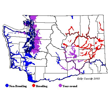 The Northern Shoveler is a common breeder throughout Washington's lowland ponds and wetlands (although some birds sighted in summer on the west side of the Cascades are non-breeders). It is also a common winter resident. Northern Shovelers are more common breeders on the east side of the Cascades than on the west side, but more common wintering on the west side in appropriate habitat.