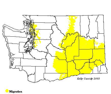 These long-distance travelers migrate through the Great Plains on both their northward and southward routes. They winter as far south as northern South America, although a few can be found wintering in the southern United States. During the fall migration, when juveniles follow about a month behind adults, the migration route is spread out, and some birds stray as far as the West Coast.